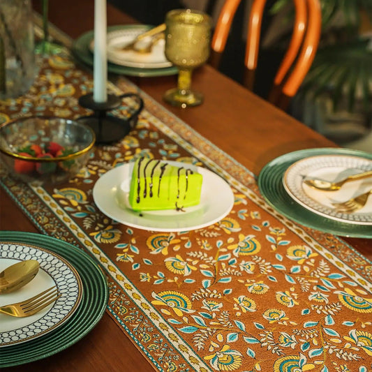 Caminho de Mesa de Luxo com Borlas - Elegância Floral para Sua Casa