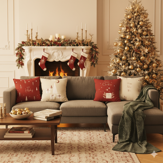 Capa de Almofada Natalina em Veludo Bordado – Elegância e Conforto