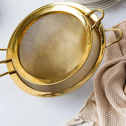 Conjunto de Peneiras Douradas de Cozinha em Aço Inoxidável - 3 Peças