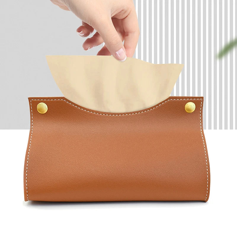 Feita em couro de alta qualidade, esta caixa de tecido é impermeável e versátil, garantindo durabilidade e estilo. Disponível em cores clássicas como Preto, Cinza, Azul, Bege e Marrom, ela se adapta facilmente a qualquer decoração, oferecendo um toque de luxo discreto e moderno.