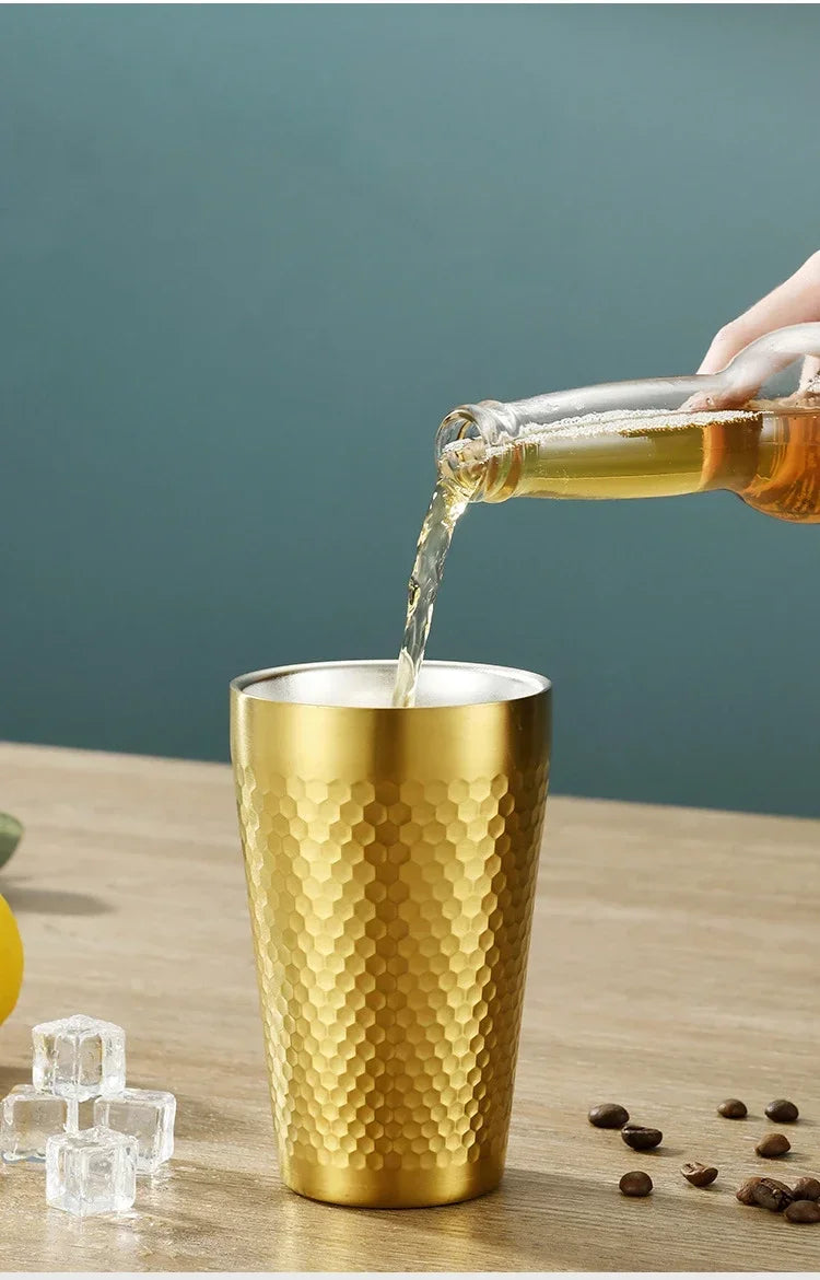 Dê um toque de classe à sua rotina diária e impressione seus convidados com esta peça única, o Copo de Aço Inoxidável Texturizada com Parede Dupla. Experimente o luxo e a praticidade em cada gole.