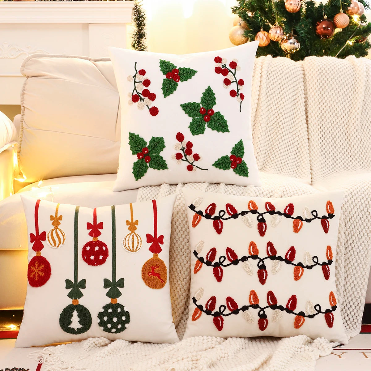 Capa de Almofada Natalina em Veludo Bordado – Elegância e Conforto