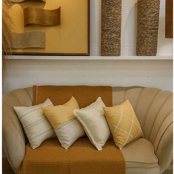 Este kit com 4 capas de almofada Boho combina texturas naturais, tons neutros e detalhes artesanais, trazendo sofisticação e aconchego para sua sala, quarto ou varanda. Confeccionadas em linho misto, algodão e juta, oferecem toque macio e durabilidade, harmonizando perfeitamente com ambientes rústicos, boêmios ou contemporâneos. Cada capa é uma peça versátil e atemporal, ideal para criar espaços acolhedores e cheios de personalidade. Aposte no Boho Chic para renovar sua decoração com elegância e autenticidade.