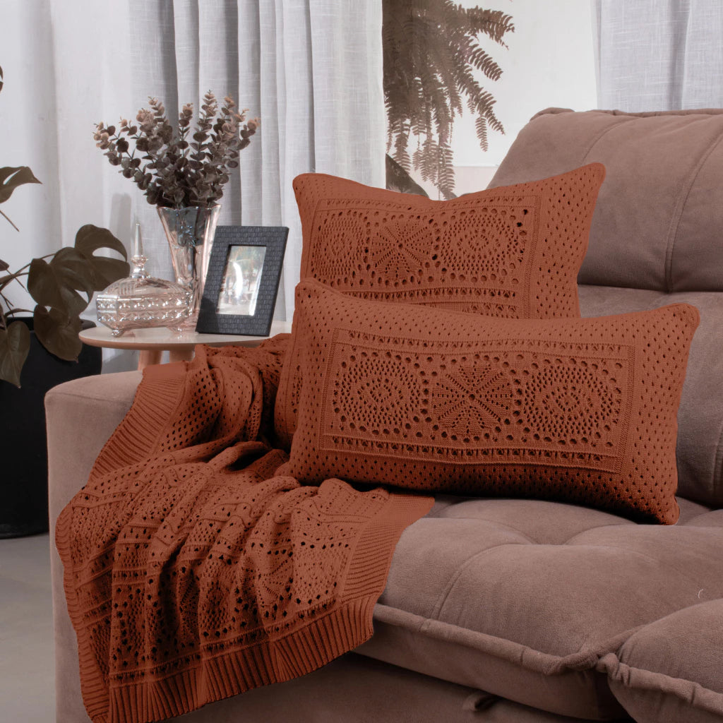 Kit Manta / Peseira Tricot Luxo 100% Algodão + 2 Capas de Almofadas - Luxo e Elegância