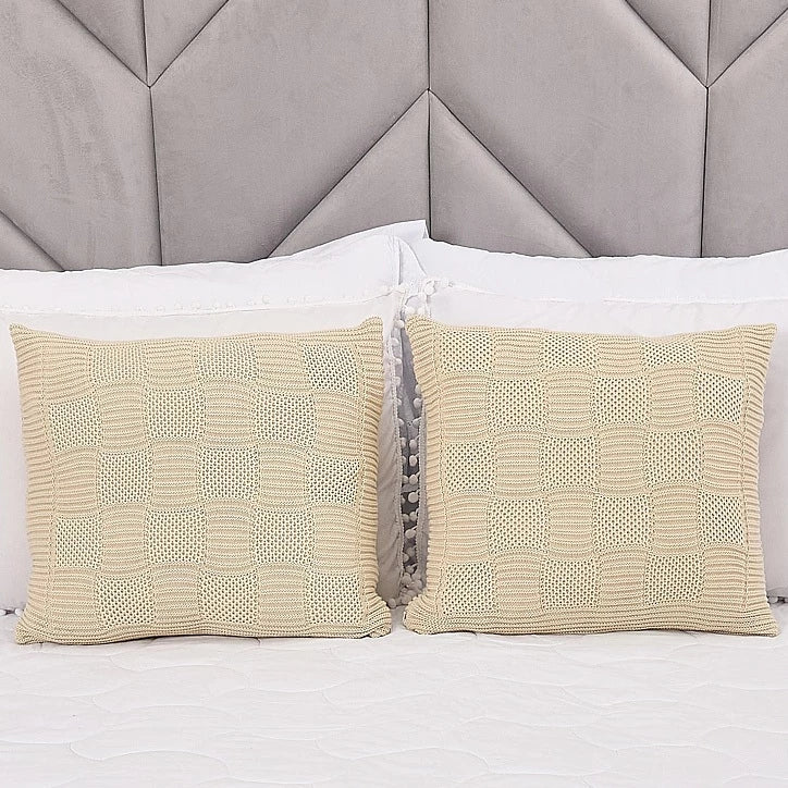 Leve para sua casa o equilíbrio perfeito entre design, aconchego e praticidade com o Kit Manta / Peseira Tricot Quadriculado + 2 Capas de Almofadas.