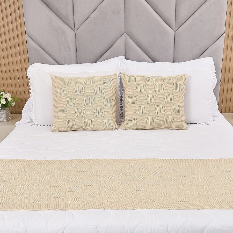 Kit Manta / Peseira Tricot Quadriculado + 2 Capas de Almofadas – Sofisticação e Conforto