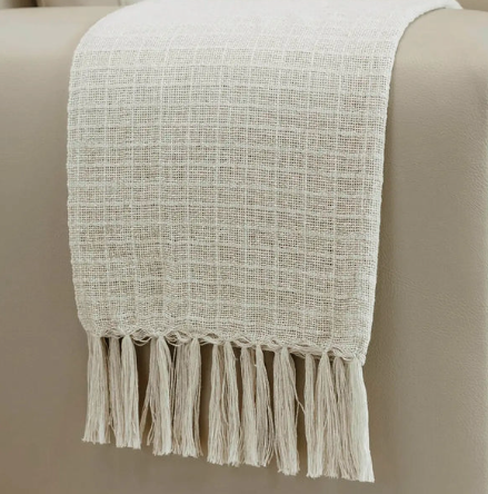 O acabamento da Manta de Sofá Sofia 100% Algodão conforto elegante com franjas feitas manualmente, destaca o charme artesanal, trazendo exclusividade e personalidade para sofás, poltronas e camas. Versátil, adapta-se a diversos estilos de decoração — do contemporâneo ao rústico — adicionando um toque elegante e acolhedor em qualquer espaço.