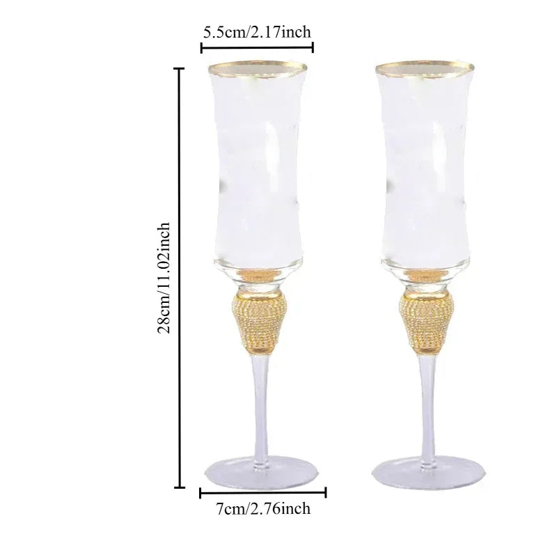 Taças de Cristal Luxo com Borda Dourada e Acabamento Diamante