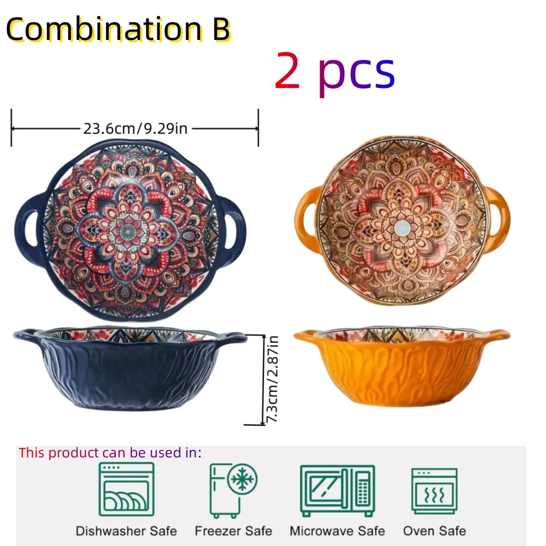 Tigela Boêmia de Cerâmica com 2 Alças - Elegância e Praticidade