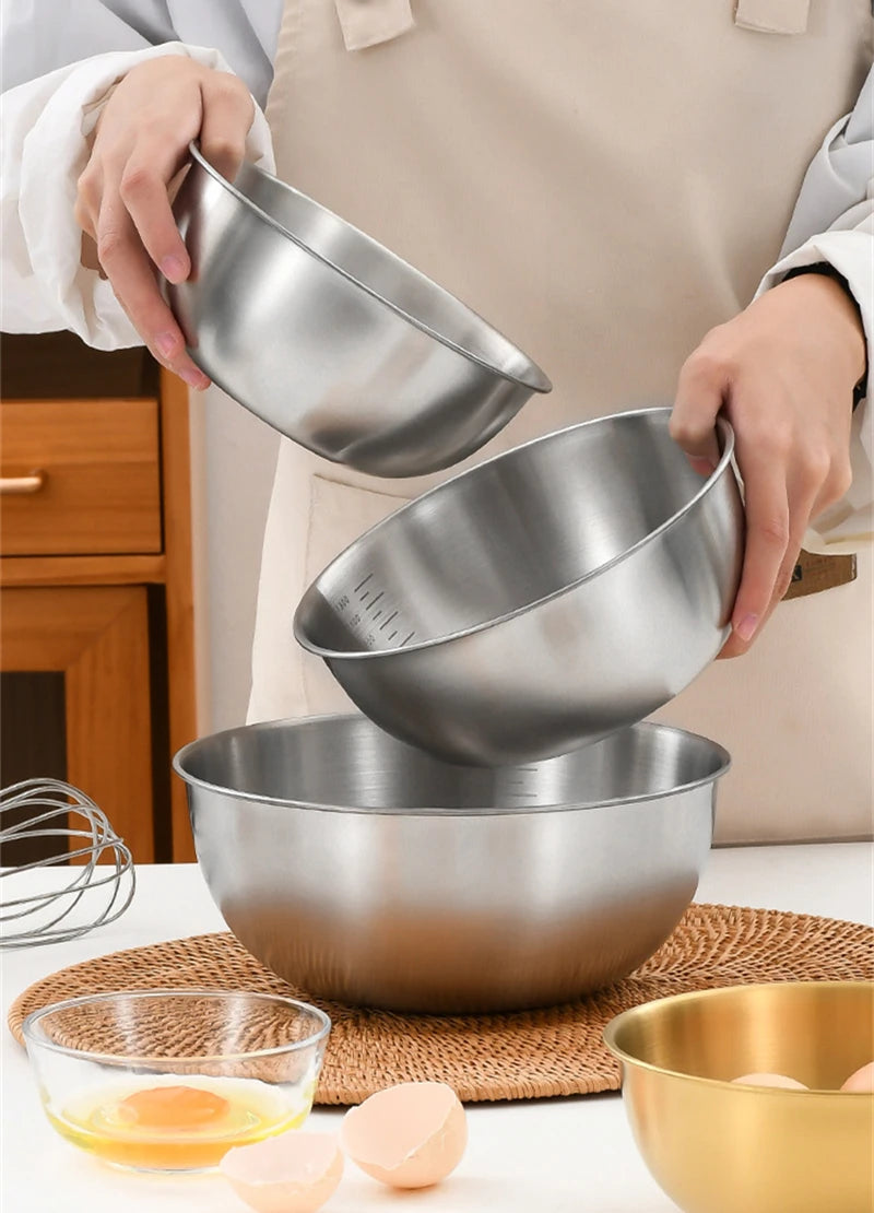 Descubra a perfeita combinação de elegância e funcionalidade com nossas Tigelas de Aço Inoxidável com Escala. Ideal para quem aprecia um toque sofisticado em cada detalhe de sua casa. Estas tigelas não são apenas recipientes, mas uma expressão de estilo e praticidade.